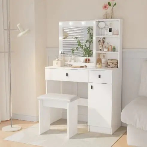 Product Name:Vanity Desk with Lights, Vanity Set with Mirror, Makeup Vanity Desk with Large Drawers & Three Level Storage Dreeser, Vanitys/Vanities with 3 Lights Brightness Adjustable for Bedroom, White